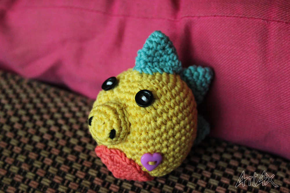 Quería hacer algo distinto y pequeñito para probar y lo que salió fue este monstruito amarillo tan cuco :) ¿Os gusta? Yo estoy enamorada del acabado de este hilo. Es verdad que es más caro que el que suelo usar (que también es bueno, 100% algodón), pero merece la pena.